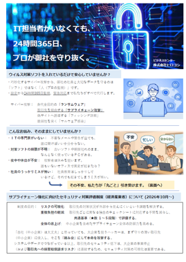 ・「ITの専門家がいない」: 不審なメールや警告が出ても、誰に聞けばいいか分からない。