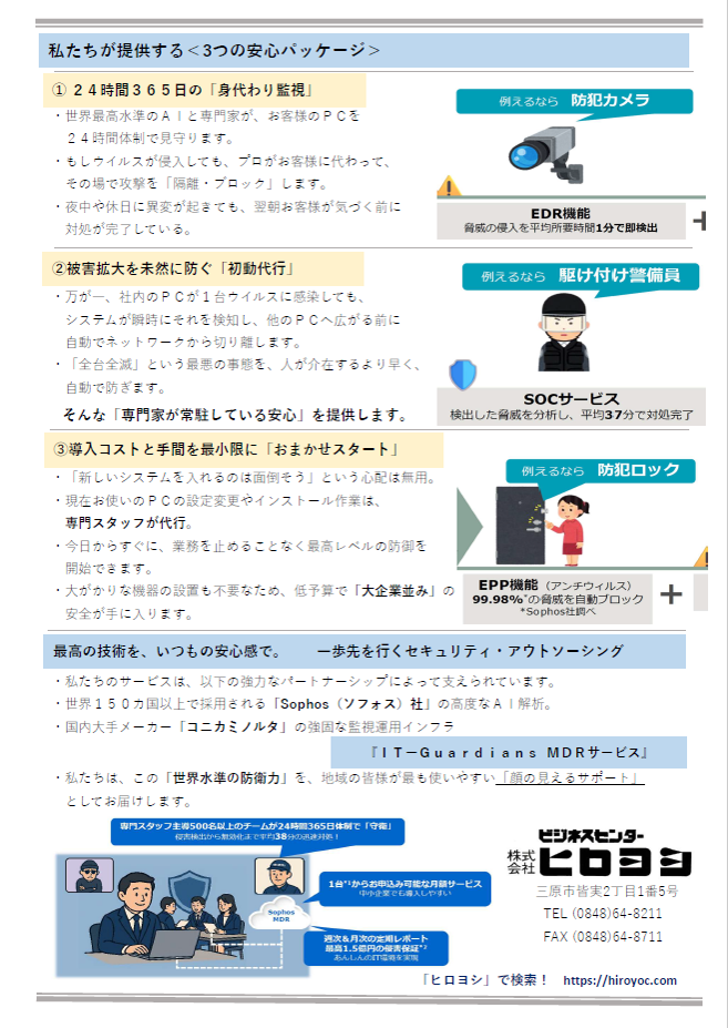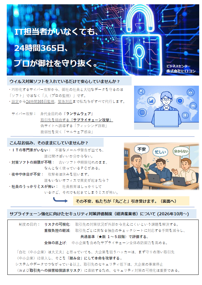 IT担当者がいなくても、24時間365日、プロが御社を守り抜く。
